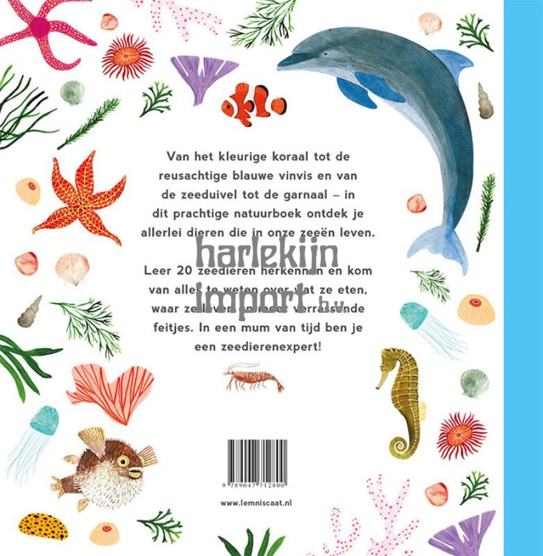 Van het kleurige koraal tot de reusachtige blauwe vinvis en van de zeeduivel tot de garnaal – in dit prachtige natuurboek leer je twintig zeedieren herkennen en kom je van alles te weten over wat ze eten, waar ze leven en meer verrassende feitjes.