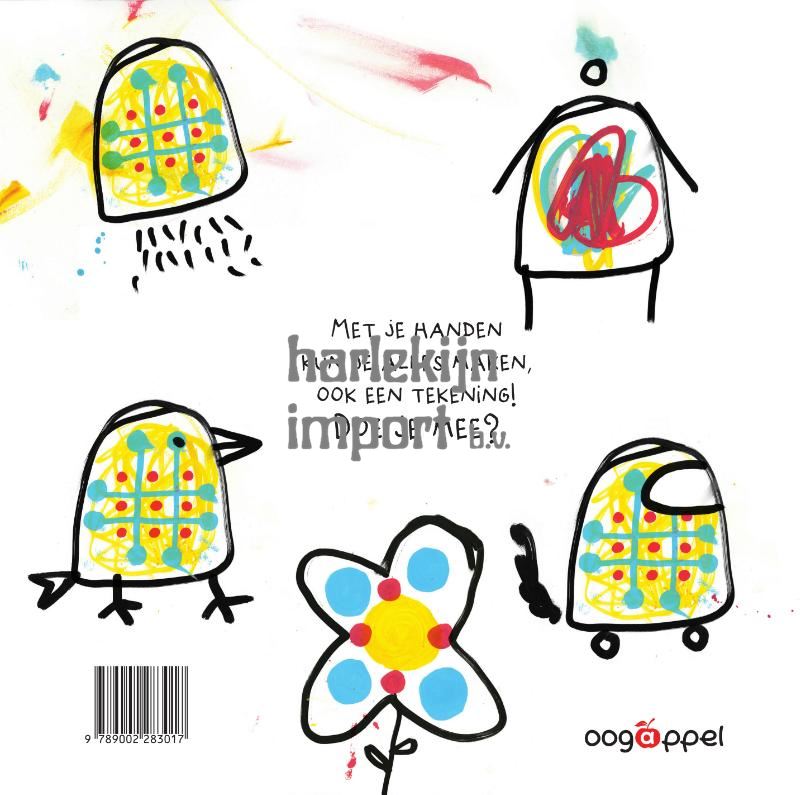 Met je handen kun je alles maken, ook een tekening!Doe je mee? Hervé Tullet nodigt kinderen uit om hun fantasie de vrije loop te laten door op de pagina’s te tekenen, tot er op het einde zich een kleine poster ontvouwt.