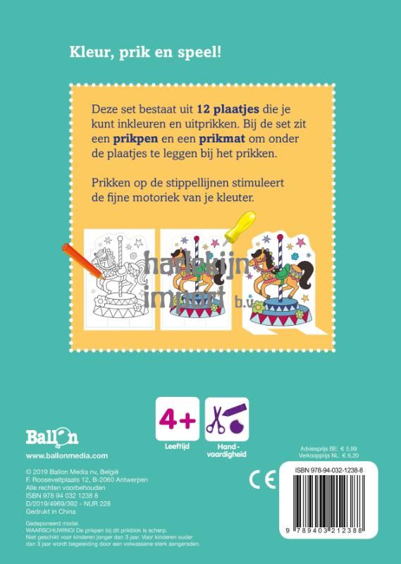Elke set bestaat uit 12 plaatjes die je kunt inkleuren en uitprikken.