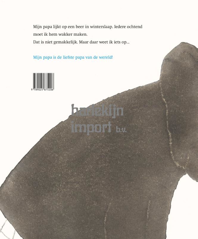 Mijn papa lijkt op een beer in winterslaap. Iedere ochtend moet ik hem wakker maken.