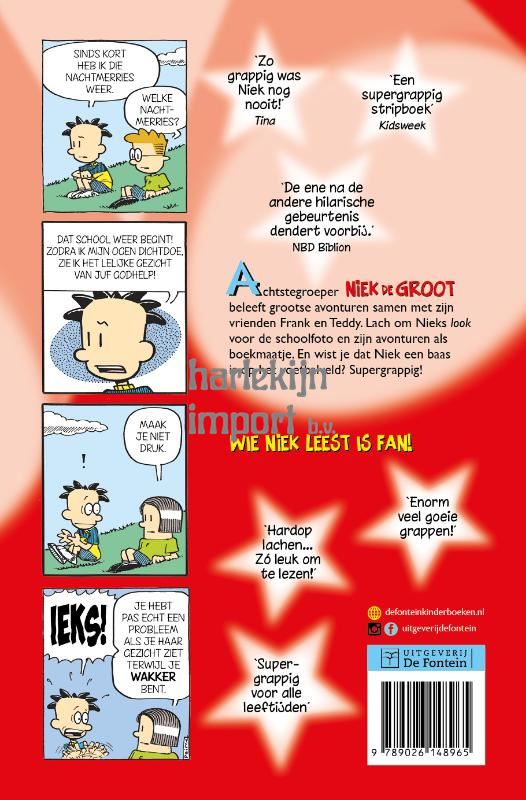 Achtstegroeper Niek de Groot is terug met een serie supergrappige strips. Hij is recordhouder nablijven, maar dat weerhoudt hem er niet van om groots te dromen. Met dit boek rol je 224 pagina’s lang over de grond van het lachen.