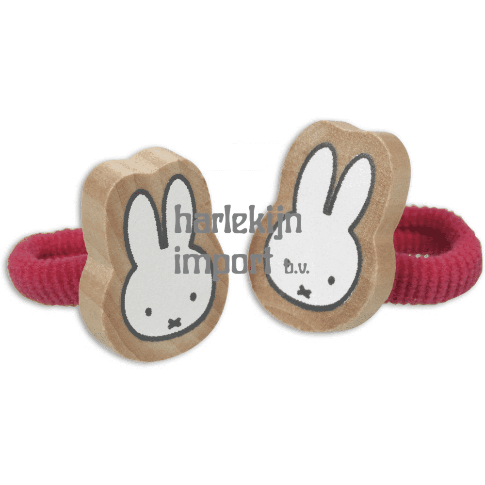 Set van 2 roze elastiekjes met houten nijntje-decoratie, voor dametjes die graag piekfijn de deur uitgaan.