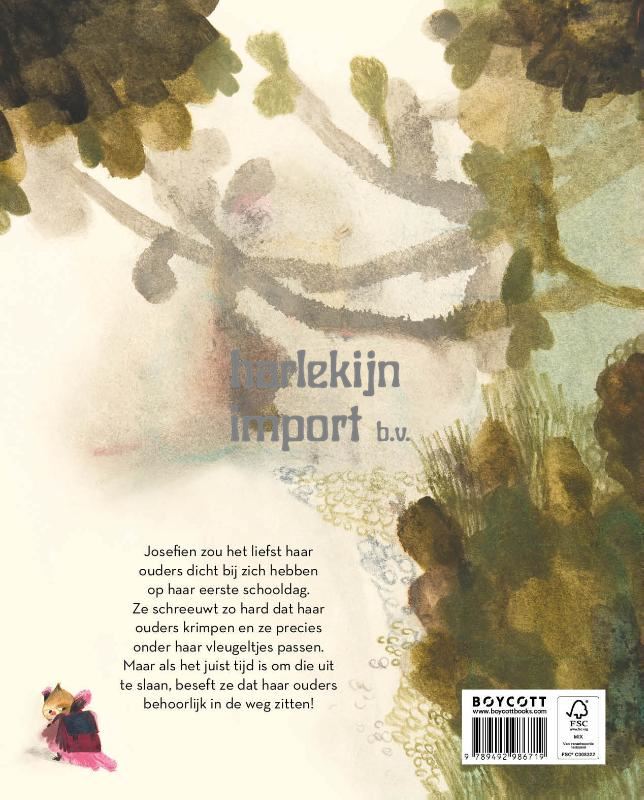 Josefien is een klein vleermuisje. Ze moet voor het eerst naar school, net als iedereen. Maar ze weigert, verzet zich en schreeuwt zo hard... De andere dieren marcheren gehoorzaam naar school, maar Josefien kan het niets schelen. "Nooit niet!" verklaart ze. Ze gaat NIET. Ze schreeuwt zo luid dat haar ouders krimpen tot de grootte van pinda's - precies de juiste maat om knus onder Josefiens vleugel te passen. Nu kunnen ze allemaal samen naar school gaan! In 'Nooit niet!' herinnert de bekroonde illustrator Beatrice Alemagna ons eraan dat kleine kinderen hun ouders in de buurt nodig hebben... maar niet té dichtbij. 'Nooit niet!' is een prachtig eerbetoon aan alle kleine kinderen die liever thuisblijven op de eerste schooldag.