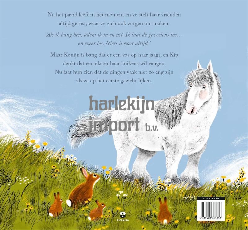 Een prachtig en geruststellend prentenboek van Ruth Doyle voor kinderen vanaf 3 jaar over je minder zorgen maken en in het moment leven. 'Als ik bang ben, adem ik in en uit. Ik laat de gevoelens toe... en weer los. Niets is voor altijd.' Nu het paard geniet van de zingende vogels en kletsende krekels. Maar Konijn is bang dat er een vos op haar jaagt, en Kip denkt dat een ekster haar kuikens wil vangen. Wanneer een onweersbui nadert, leidt Nu haar vrienden naar een schuilplaats, waar ze al snel ontdekken dat niet alles zo angstaanjagend is als het lijkt. Met illustraties van Alexandra Finkeldey.