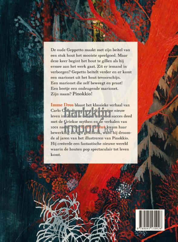 Meesterlijke hervertelling van Collodi’s Pinokkio door grootmeesters Imme Dros en Carll Cneut. Dros tovert met taal, zoals Cneut dat met zijn penseel doet. Samen brengen ze Gepetto’s beroemde houten pop op een schitterende manier tot leven. Kinderen van alle leeftijden zullen zich in deze Pinokkio herkennen.