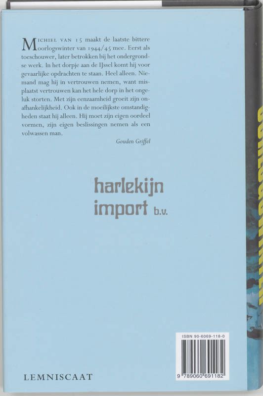 Michiel van 15 maakt de laatste bittere oorlogswinter van 1944/45 mee. Eerst als toeschouwer, later betrokken bij het ondergrondse werk. In het dorpje aan de IJssel komt hij voor gevaarlijke opdrachten te staan. Heel alleen. Niemand mag hij in vertrouwen nemen, want misplaatst vertrouwen kan het hele dorp in het ongeluk storten. Met zijn eenzaamheid groeit zijn onafhankelijkheid. Ook in de moeilijkste omstandigheden staat hij alleen. Hij moet zijn eigen oordeel vormen, zijn eigen beslissingen nemen als een volwassen man.