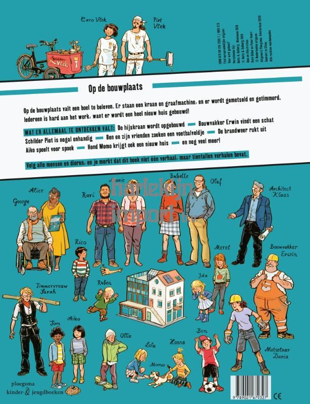 Op de bouwplaats valt een boel te beleven. Er staan een kraan en een graafmachine, en er wordt gemetseld en getimmerd. Iedereen is hard aan het werk, want er wordt een heel nieuw huis gebouwd!