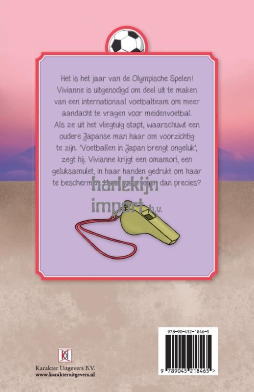 Het is het jaar van de Olympische Spelen! Vivianne wordt uitgenodigd om deel uit te maken van een internationaal meidenvoetbalteam om meer aandacht te besteden aan meidenvoetbal. Als ze uit het vliegtuig stapt, drukt een Japanse meneer haar een maneki-neko in haar handen, een beeldje van een poes die geluk brengt. ‘Voor jou. Je zult haar nodig hebben’, zegt hij. Maar dan valt het beeldje kapot. Brengen scherven in Japan nou geluk – of juist niet?