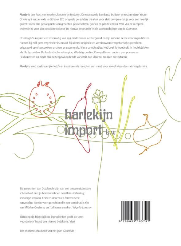 Plenty is een feest van smaken, kleuren en texturen. De succesvolle Londense traiteur en restaurateur Yotam Ottolenghi verzamelde in dit boek 120 originele gerechten, die stuk voor stuk bewijzen dat je voor een heerlijk gerecht meer dan genoeg hebt aan groenten, peulvruchten, granen en paddestoelen.