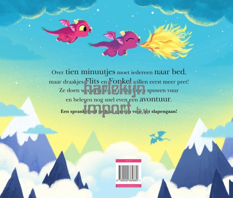Over tien minuutjes moeten ze naar bed, maar Flits en Fonkel hebben nog helemaal geen zin om te gaan slapen. Tel samen met deze kleine draken af tot het bedtijd is, terwijl ze hoog in de lucht van het ene kleine avontuur naar het andere razen. Lukt het ze om op tijd in bed te liggen?
