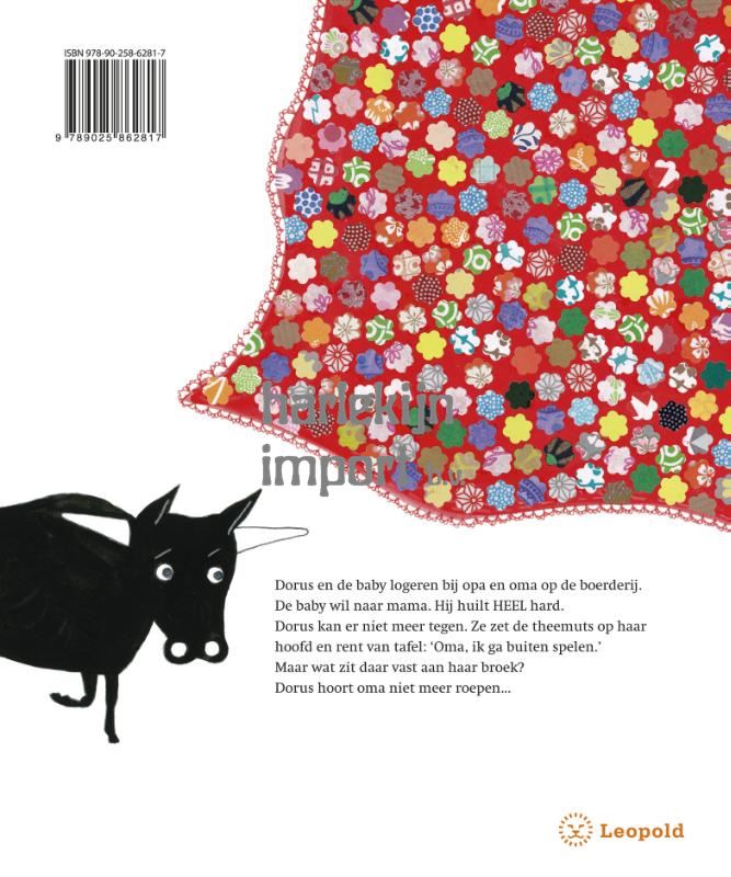 Dorus en de baby logeren bij opa en oma op de boerderij. De baby wil naar mama. Hij huilt HEEL hard. Dorus kan er niet meer tegen. Ze zet de theemuts op haar hoofd en rent van tafel; 'Oma ik ga buiten spelen.' Maar wat zit daar vast aan haar broek? Dorus hoort oma niet meer roepen...