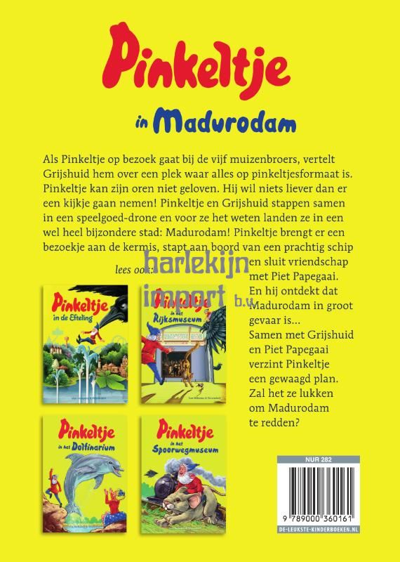 <h1>Pinkeltje in Madurodam</h1> <h2>Een spannend avontuur van Studio Dick Laan</h2> <p>Als Pinkeltje op bezoek gaat bij de vijf muizenbroers, vertelt Grijshuid hem over een plek waar alles op pinkeltjesformaat is. Pinkeltje kan zijn oren niet geloven. Hij wil niets liever dan er een kijkje gaan nemen! Pinkeltje en Grijshuid stappen samen in een speelgoed-drone en voor ze het weten landen ze in een wel heel bijzondere stad: Madurodam! Pinkeltje brengt er een bezoekje aan de kermis, stapt aan boord van een prachtig schip en sluit vriendschap met Piet Papegaai. En hij ontdekt dat Madurodam in groot gevaar is… Samen met Grijshuid en Piet Papegaai verzint Pinkeltje een gewaagd plan. Zal het ze lukken om Madurodam te redden?</p> <ul> <li>Spannend, tijdloos avontuur voor oude én nieuwe fans van de iconische serie van Dick Laan</li> <li>Volledig herziene editie van het eerder verschenen verhaal</li> </ul>