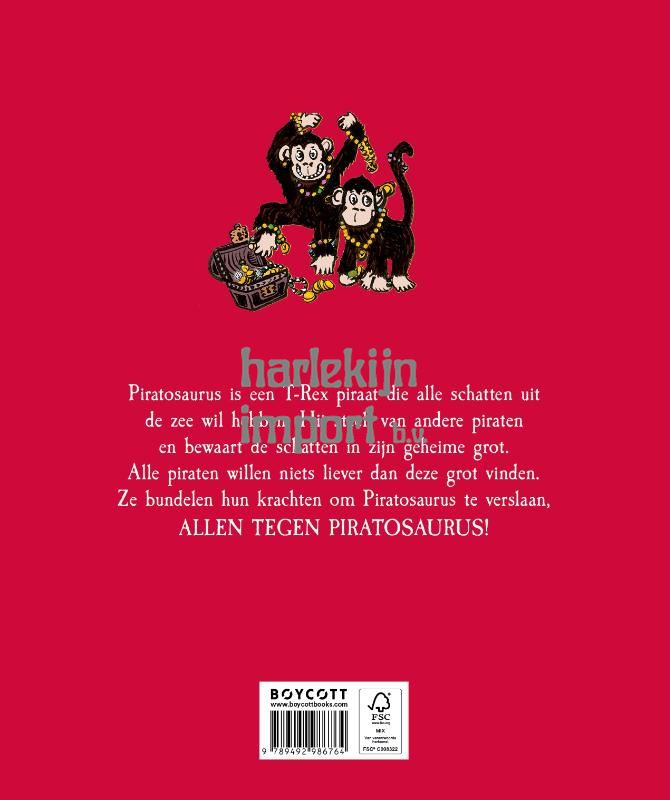 Liefhebbers van piraten en dinosauriërs opgelet! De nieuwe kinderboekenserie, Piratosaurus, brengt deze twee fascinerende werelden samen in een onvergetelijk verhaal! De verschrikkelijke Piratosaurus wil alle schatten van de zeeën en oceanen hebben. Hij plundert schepen recht onder de neuzen van andere piraten en grijpt elke kans om de buit van de vrijbuiters te bemachtigen. In zijn uiterst geheime grot stapelt hij gouden munten, smaragden, robijnen, diamanten en miljarden saffieren op… Alle piratenleiders dromen ervan om zijn fabelachtige, legendarische grot te vinden. Ze besluiten zich te verenigen. ALLEN TEGEN PIRATOSAURUS!