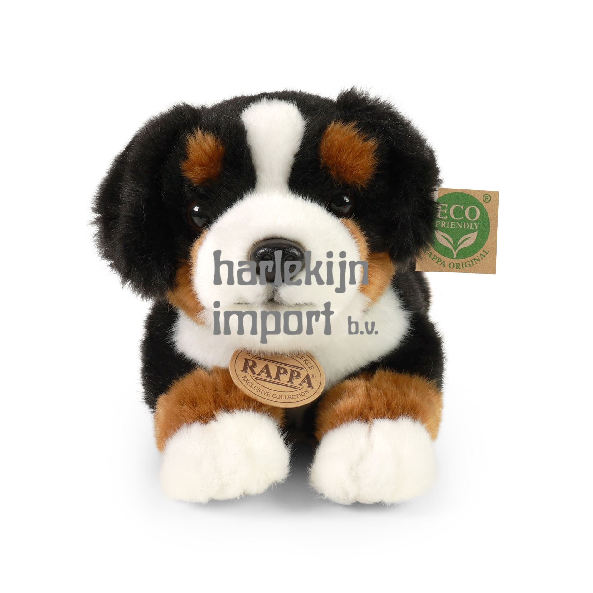 Berner Sennenhond is een super toevoeging aan de pluche collectie! De hond van 30 cm formaat is gemaakt van hoogwaardig, zacht pluche en maakt daarom deel uit van de exclusieve collectie knuffels RAPPA. Perfect cadeau voor elke gelegenheid! Wat betekent ECO-FRIENDLY eigenlijk? De vulling van pluche speelgoedvezels is gemaakt van gerecyclede PET-flessen. Dit materiaal is volkomen veilig, niet te onderscheiden van de standaard vulling en volledig gecertificeerd voor de veiligheid van baby's. We hebben besloten om het groene pad zo milieuvriendelijk mogelijk te volgen - het ECO-FRIENDLY pad.
