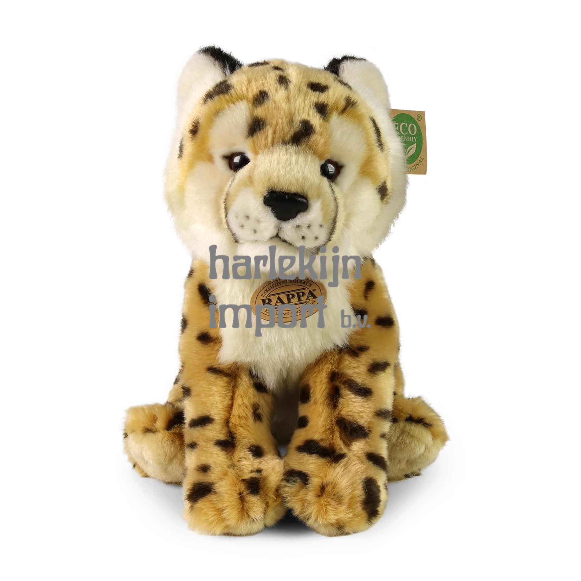 Pluche cheeta meet 28 cm en behoort dankzij de materialen van de hoogste kwaliteit tot de Exclusive Collection pluche speelgoed van het merk Rappa. Dankzij de handgemaakte verwerking van elk stuk ziet het er ook nog eens levendig uit. Waarom het ECO-FRIENDLY label? Rappa is zich bewust van alle milieueffecten, richt zich op duurzaamheid en het tot een minimum beperken van het gebruik van plastic. Daarom is de speelgoedvulling gemaakt van gerecyclede materialen, met name PET-flessen. Het is echter volkomen onschadelijk en geschikt voor kinderen vanaf de geboorte. LEUK WEETJE: Wist je dat cheeta's de snelste landdieren ter wereld zijn?