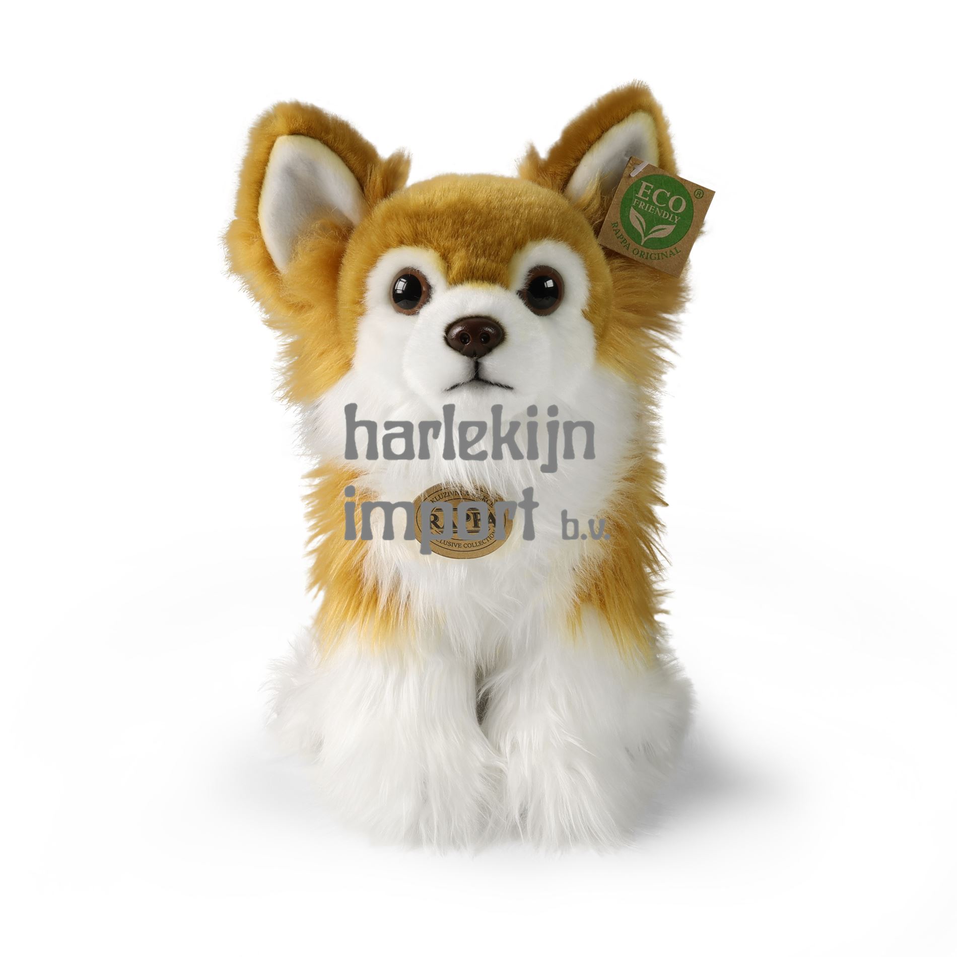 De pluche Chihuahua hond meet 28 cm en maakt dankzij de materialen van de hoogste kwaliteit deel uit van de Rappa Exclusive Collection van knuffels. Dankzij het handgemaakte karakter van elk stuk ziet het er levensecht uit. Waarom het ECO-FRIENDLY label? Rappa is zich bewust van alle milieueffecten, richt zich op duurzaamheid en het minimaliseren van het gebruik van plastic. Daarom is de speelgoedvulling gemaakt van gerecyclede materialen, met name PET-flessen. Het is echter volkomen onschadelijk en geschikt voor kinderen vanaf de geboorte. LEUK WEETJE: Wist je dat chihuahua's een van de grootste hersenen onder honden hebben in verhouding tot hun lichaamsgrootte?