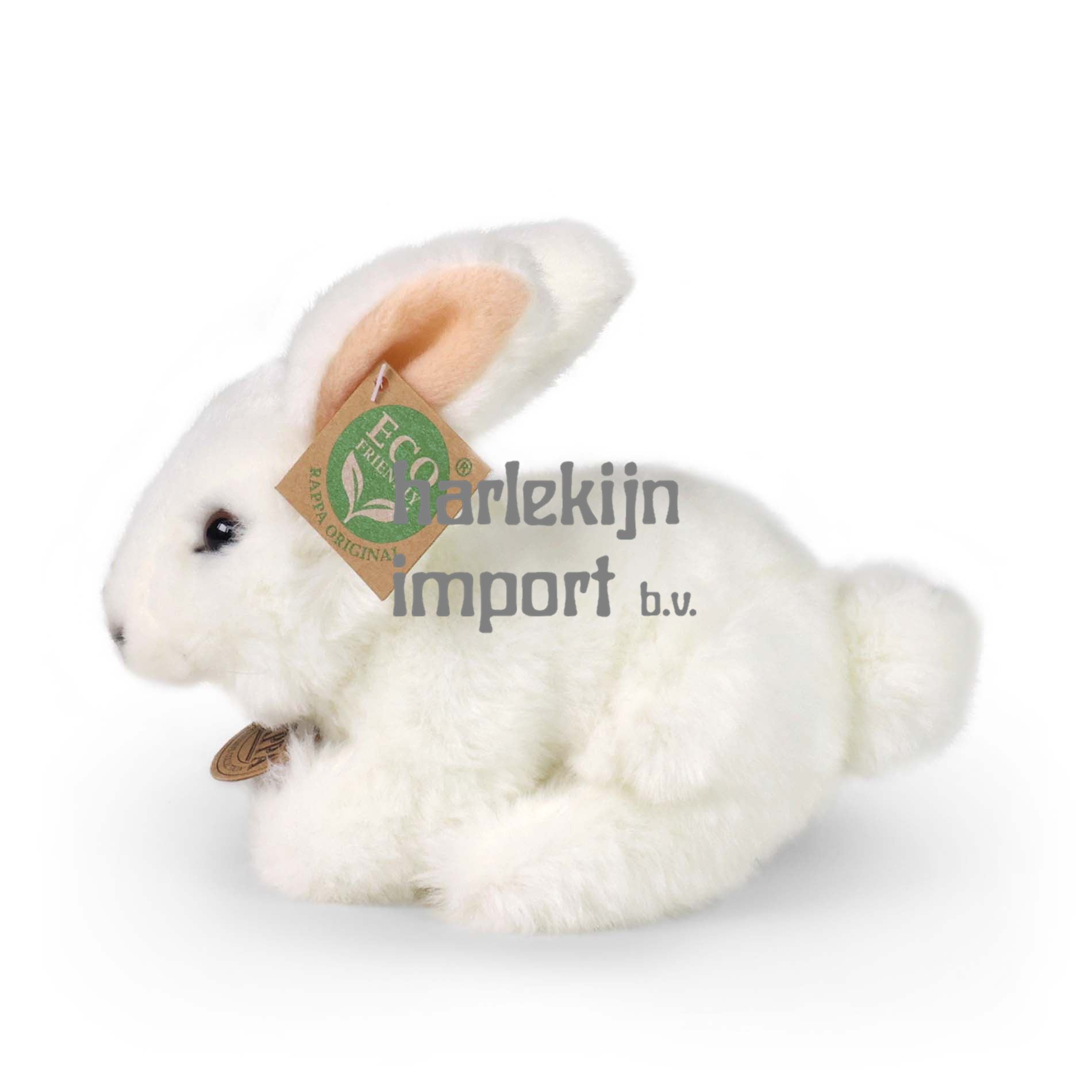Dit schattige pluche konijn van 18 cm is gemaakt van hoogwaardige pluche en maakt deel uit van de exclusieve collectie van RAPPA pluche speelgoed. Wat betekent ECO-VRIENDELIJK eigenlijk? De vulling van het pluche speelgoed is gemaakt van gerecyclede PET-flessen. Dit materiaal is volledig veilig, niet te onderscheiden van de standaard vulling en volledig gecertificeerd voor de veiligheid van zelfs de kleinste kinderen. We hebben besloten de groene weg in te slaan, zo milieuvriendelijk mogelijk ? de ECO-VRIENDELIJKE weg.