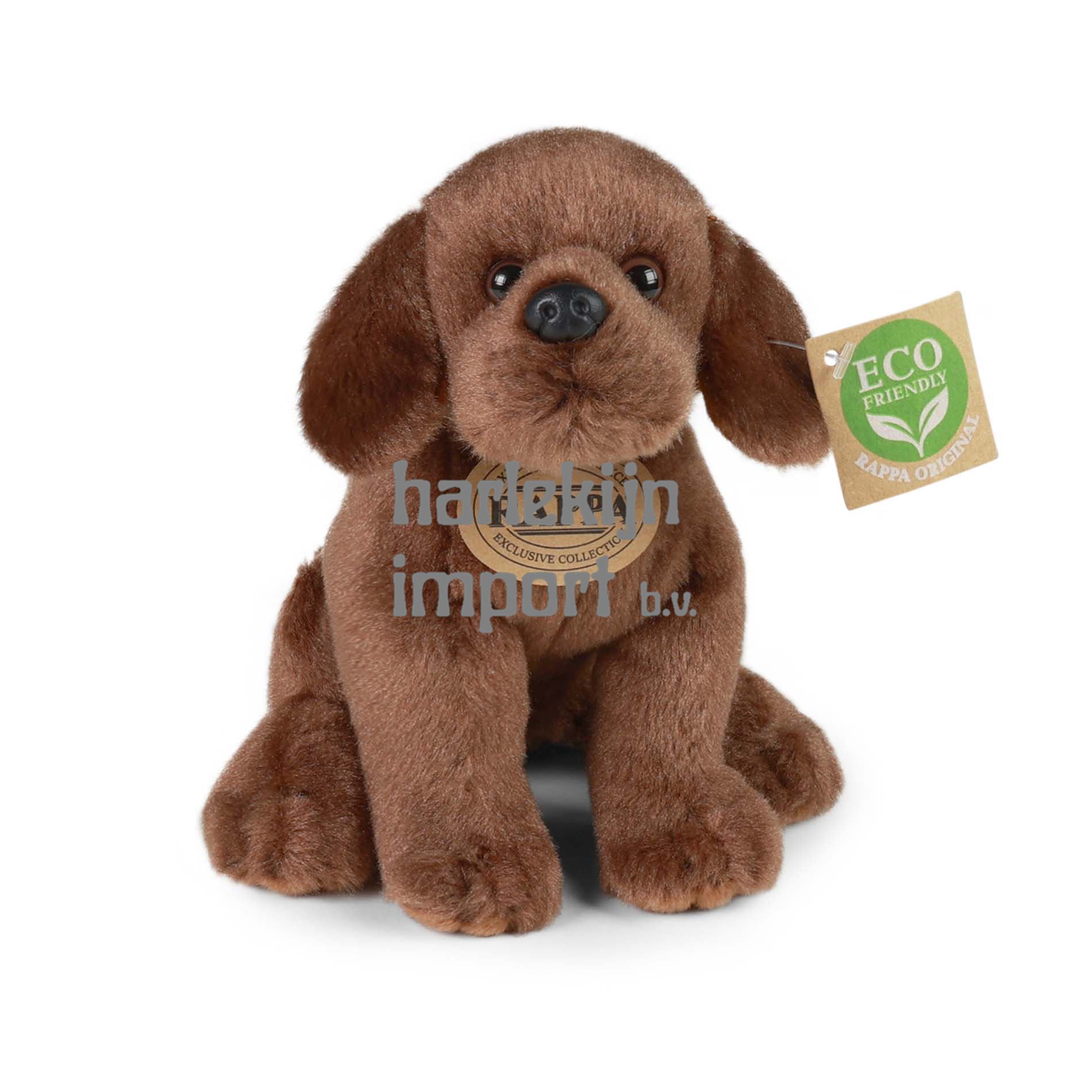 Mooie pluche Labrador van 20 cm in twee kleuren. De hond is gemaakt van kwaliteitspluche en maakt daarmee deel uit van de exclusieve collectie knuffels RAPPA. Wat betekent ECO-FRIENDLY eigenlijk? De vulling van de knuffel is gemaakt van gerecyclede PET-flessen. Dit materiaal is volkomen veilig, niet te onderscheiden van de standaard vulling en volledig gecertificeerd voor de veiligheid van zelfs de allerkleinsten. We hebben besloten om de groene weg te gaan, zo milieuvriendelijk mogelijk - de ECO-VRIENDELIJKE manier.
