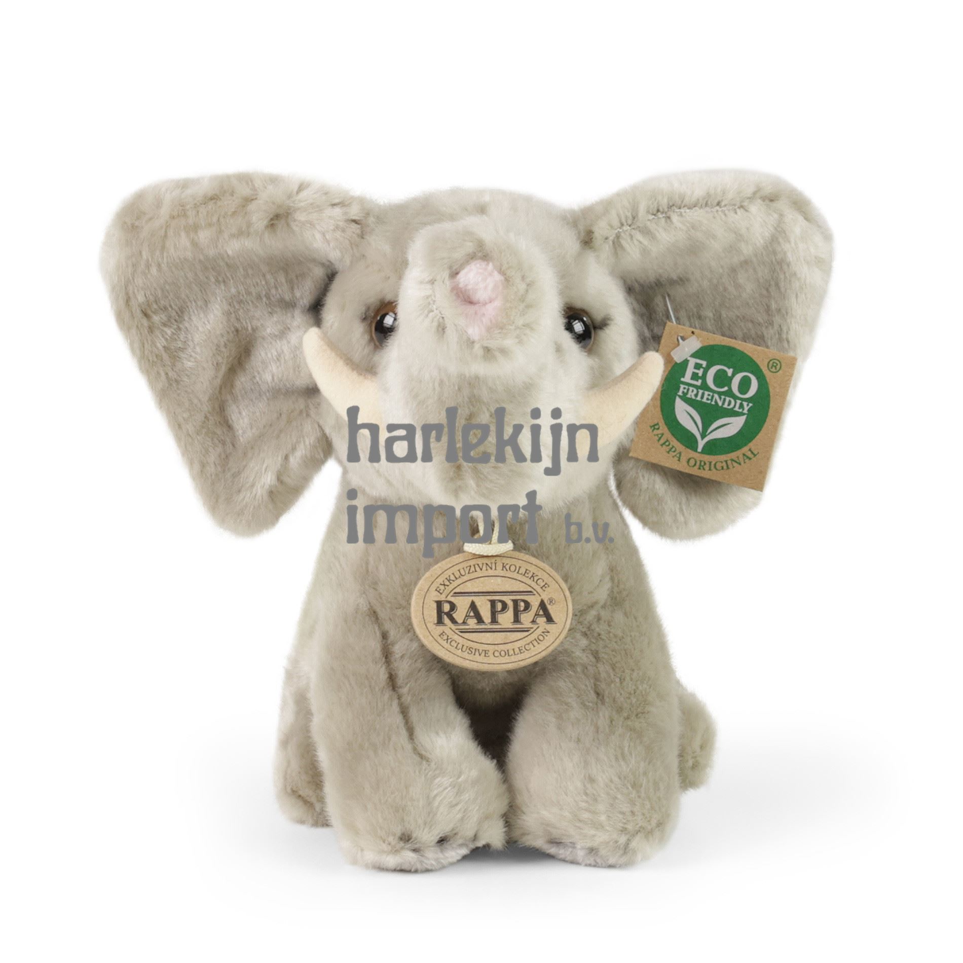 De prachtige pluche olifant in de maat van 18 cm is gemaakt van exclusief, hoogwaardig pluche en maakt deel uit van de exclusieve collectie knuffels RAPPA. Dit sensationele pluche stuk is ook ideaal als cadeau! Wat betekent ECO-FRIENDLY eigenlijk? De vulling van de knuffel is gemaakt van gerecyclede PET-flessen. Dit materiaal is volkomen veilig, niet te onderscheiden van de standaard vulling en volledig gecertificeerd voor de veiligheid van zelfs de allerkleinsten. We hebben besloten om de groene weg zo milieuvriendelijk mogelijk te gaan - de ECO-VRIENDELIJKE manier.