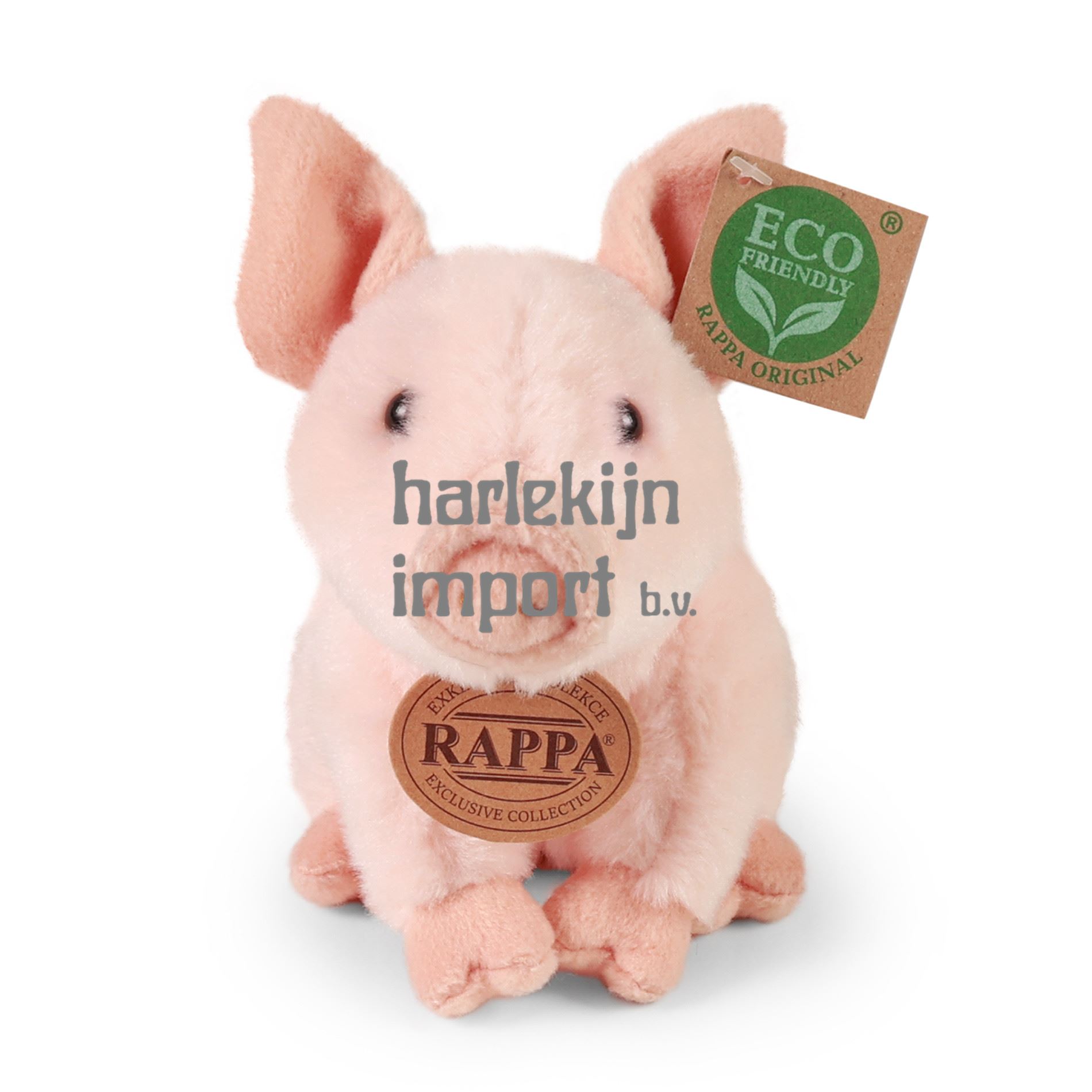 Het schattige pluche varken, maat 18 cm, is gemaakt van hoogwaardig pluche en maakt daarom deel uit van de exclusieve collectie knuffels RAPPA. Wat betekent ECO-FRIENDLY eigenlijk? De vulling van de knuffel is gemaakt van gerecyclede PET-flessen. Dit materiaal is volkomen veilig, niet te onderscheiden van de standaard vulling en volledig gecertificeerd voor de veiligheid van zelfs de allerkleinsten. We hebben besloten om de groene weg zo milieuvriendelijk mogelijk te gaan - de ECO-VRIENDELIJKE manier.