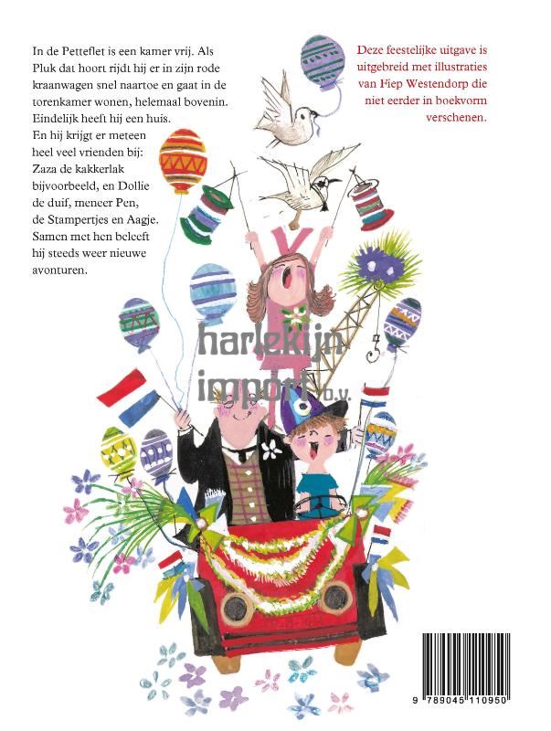 Pluk had een klein rood kraanwagentje. Hij reed ermee door de hele stad en zocht naar een huis om in te wonen. Af en toe stopte hij. En dan vroeg hij aan de mensen: 'Weet u niet een huis voor me?'