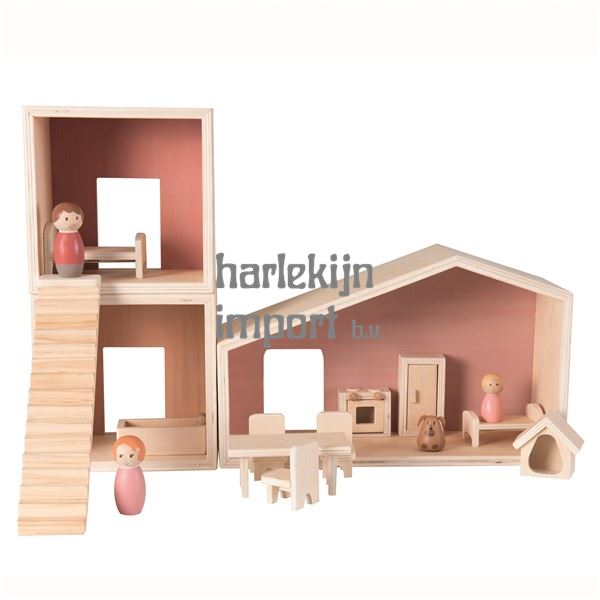 Dit moduleerbare houten poppenhuis bouw je op volgens je eigen fantasie. Wordt geleverd compleet met de hele familie en alle meubeltjes. Uren speelplezier gegarandeerd. FSC hout. 3+