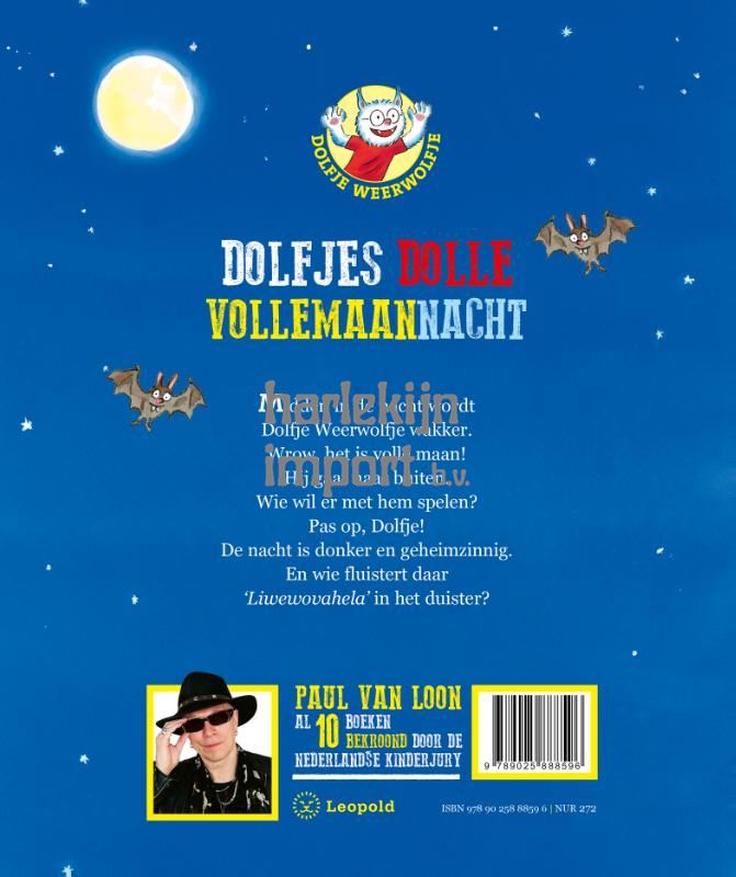 Midden in de nacht wordt Dolfje Weerwolfje wakker. Wrow, het is volle maan! Hij gaat naar buiten. Wie wil er met hem spelen? Pas op, Dolfje! De nacht is donker en geheimzinnig. En wie fluistert daar ‘Liwewovahela’ in het duister? Dolfjes dolle vollemaannacht is een prentenboek over Dolfje Weerwolfje om voor te lezen vanaf vier jaar.