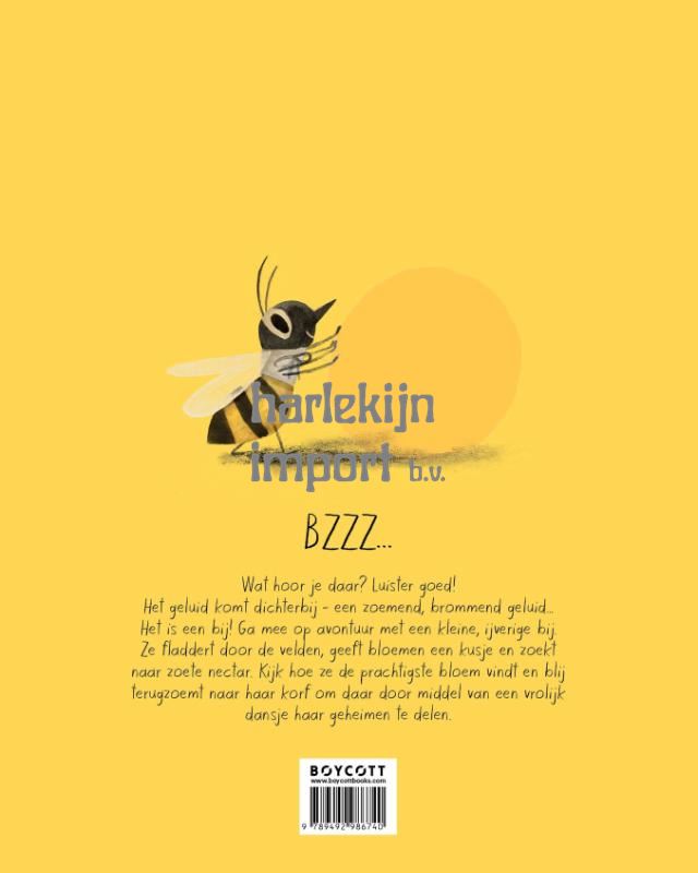Bzzz... Wat hoor je daar? Luister goed! Het geluid komt dichterbij - een zoemend, brommend geluid... Het is een bij! Ga mee op avontuur met een kleine, ijverige bij. Ze fladdert door de velden, geeft bloemen een kusje en zoekt naar zoete nectar. Kijk hoe ze de prachtigste bloem vindt en blij terugzoemt naar haar korf om daar door middel van een vrolijk dansje haar geheimen te delen. Dit levendige boek laat kinderen kennismaken met de wonderen van de natuur en de speciale rol van de bij. Geschreven door de veelgeprezen auteur Kirsten Hall en geïllustreerd door de bekroonde Isabelle Arsenault, bekend van 'De muis met het open huis'. Prachtig vertaald door Bette Westra.
