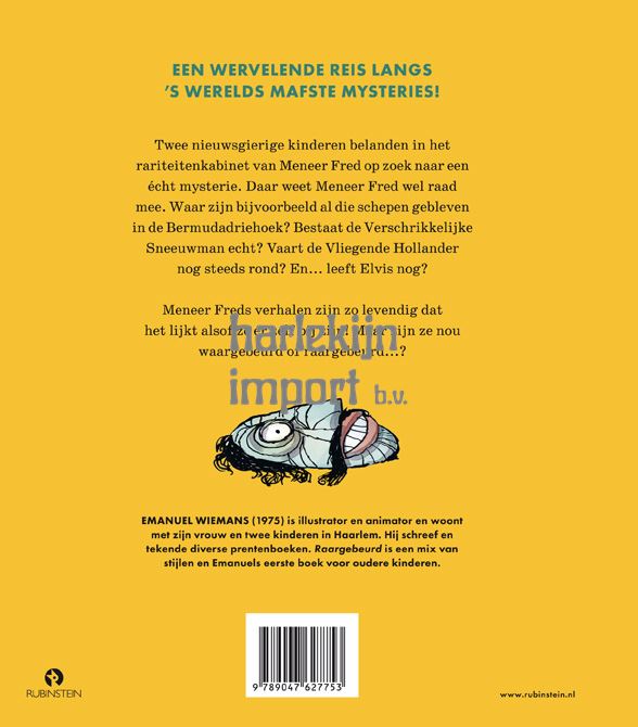 De wereld zit vol met geheimen en mysteries. Waarom zijn er zo veel schepen vergaan in de Bermuda-driehoek? Bestaat de Verschrikkelijke Sneeuwman echt? Waar vind je de verloren stad van Atlantis? Worden graancirkels gemaakt door buitenaardse wezens? En… leeft Elvis nog? In zijn rariteitenkabinet leidt meneer Fred twee nieuwsgierige kinderen langs een reeks onverklaarde fenomenen... Letterlijk! Raargebeurd! is een heerlijk boek vol raadsels om je over te verwonderen, of op zoek te gaan naar het antwoord. (Als je durft!)
