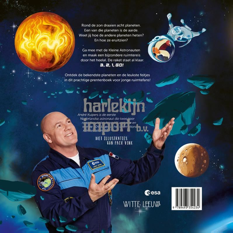 Rond de zon draaien acht planeten. Een van die planeten is de aarde. Weet jij hoe de andere planeten heten? En hoe ze eruitzien? Ga mee met de Kleine Astronauten en maak een bijzondere ruimtereis door het heelal! De raket staat al klaar. 3, 2, 1, GO! Ontdek de bekendste planeten en leuke feitjes in dit prachtige prentenboek voor jonge ruimtefans! André Kuipers woonde en werkte in totaal 204 dagen in de ruimte. Sinds zijn terugkeer inspireert hijjong en oud met zijn belevenissen als astronaut. Met illustraties van Paco Vink.