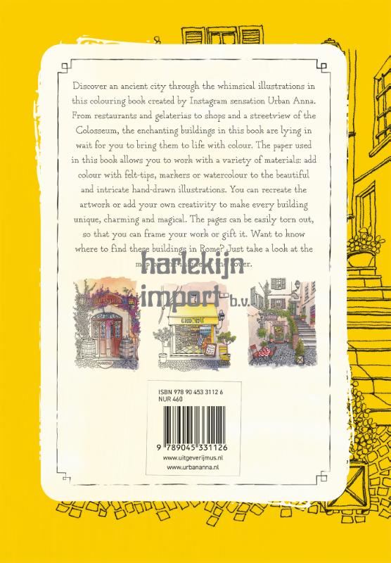 Discover an ancient city through the whimsical illustrations in this colouring book created by Instagram sensation Urban Anna. From restaurants and gelaterias to shops and a streetview of the Colosseum, the enchanting buildings in this book are lying in wait for you to bring them to life with colour. The paper used in this book allows you to work with a variety of materials: add colour with felt-tips, markers or watercolour to the beautiful and intricate hand-drawn illustrations. You can recreate the artwork or add your own creativity to make every building unique, charming and magical. The pages can be easily torn out, so that you can frame your work or gift it. Want to know where to find these buildings in Rome? Just take a look at the map on the inside of the cover.