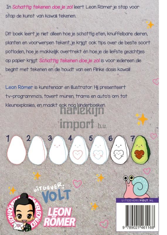 Teken de schattigste avocado’s, broodroosters, pizza’s en spookjes. In Schattig tekenen doe je zo! leert Leon Römer je hoe je in een paar simpele stappen de liefste tekeningen maakt. Voeg oogjes toe aan boterhammen, teken prikkelbare cactussen en kleur je schattige tekeningen in. Dit boek leert je niet alleen hoe je schattig eten, knuffelbare dieren, planten en voorwerpen tekent, je krijgt ook tips over de beste soort potloden, hoe je makkelijk overtrekt én hoe je de liefste gezichtjes op papier krijgt.