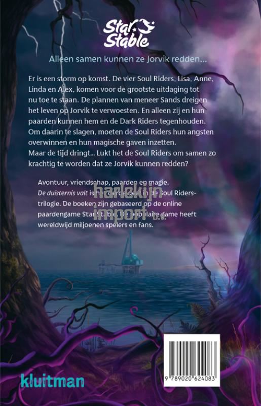De duisternis valt is het derde en laatste deel in de razend spannende fantasy-trilogie Soul Riders, gebaseerd op de wereld van de online paardengame Star Stable. Er is een storm op komst. De vier Soul Riders, Lisa, Anne, Linda en Alex, komen voor de grootste uitdaging tot nu toe te staan. De plannen van meneer Sands dreigen het leven op Jorvik te verwoesten. En alleen zij en hun paarden kunnen hem en de Dark Riders tegenhouden. Om daarin te slagen, moeten de Soul Riders hun magie perfectioneren. Maar de tijd dringt⦠Lukt het de Soul Riders om samen zo krachtig te worden dat ze Jorvik kunnen redden? Magie, vriendschap en paarden. Een spannende serie voor elke paardenliefhebber! (Vertaald door de bekende paardenboekenauteur Gertrud Jetten.)