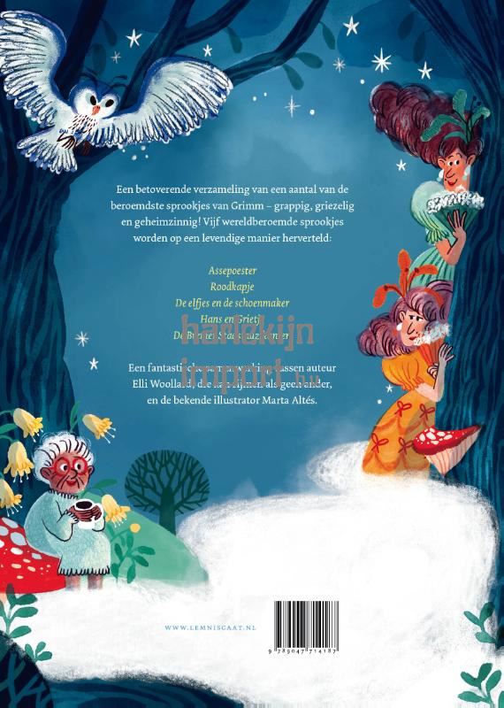 Vijf sprookjes verteld en verbeeld als nooit tevoren Volg Roodkapje door het bos waar ze een wolf tegenkomt. Griezel mee als Hans en Grietje een heks ontmoeten. Ontdek wie stiekem de schoenen van een arme schoenmaker naait. Lukt het Assepoester om naar het bal te gaan? En wie zijn toch die geheimzinnige stadsmuzikanten uit Bremen? De verhalen klinken als nieuw in het frisse en grappige rijm van Elli Woollard in de vertaling van Margaretha van Andel. Van deze door Marta Altés rijk geïllustreerde bundel zal jong en oud genieten. Van dezelfde makers als 'Formidabele fabels' en 'Waarom? Daarom!'.