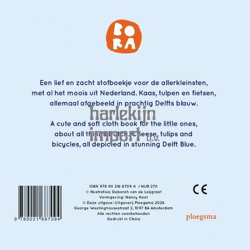 BORA Holland is het perfecte kraamcadeautje: een lekker zacht stofboekje met bekende Nederlandse dingen in Delfts blauw, mooi verpakt in een kartonnen doosje. Molens, tulpen en klompen; Hollandser kan bijna niet! In dit BORA-stofboekje maken de allerkleinsten kennis met typisch Nederlandse dingen, getekend in Delfts blauwe stijl. En zie jij het muisje dat op elke pagina verstopt zit?