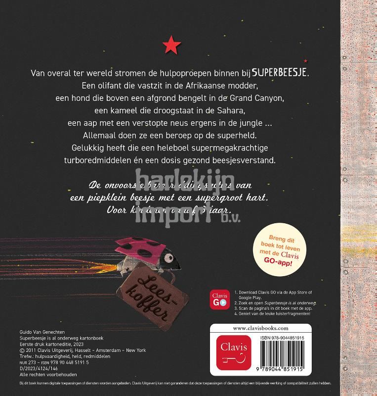 Van overal ter wereld stromen de hulpoproepen binnen bij . Een olifant die vastzit in de Afrikaanse modder, een hond die boven een afgrond bengelt in de Grand Canyon, een kameel die droogstaat in de Sahara, een aap met een verstopte neus ergens in de jungle … Allemaal doen ze een beroep op de superheld. Gelukkig heeft die een heleboel supermegakrachtige turboredmiddelen én een dosis gezond beesjesverstand. De onvoorstelbare reddingsacties van een piepklein beesje met een supergroot hart. Voor kinderen vanaf 3 jaar.