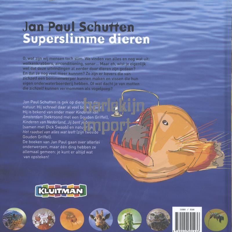 Superslimme dieren is het leukste boek voor iedereen die gek is op de fascinerende wereld van dieren. Iemand die daar zeker door gefascineerd is, is Jan Paul Schutten zelf. In dit informatieve boek vertelt hij zijn lezers alles over knappe dierenprestaties. Hij laat zien dat veel van onze uitvindingen of ontdekkingen eigenlijk al jaren worden gebruikt door dieren in de vorm van slimme aanpassingen aan hun omgeving: samenwerkingsverbanden, vermommingen, verdedigingstechnieken en navigatiesystemen.