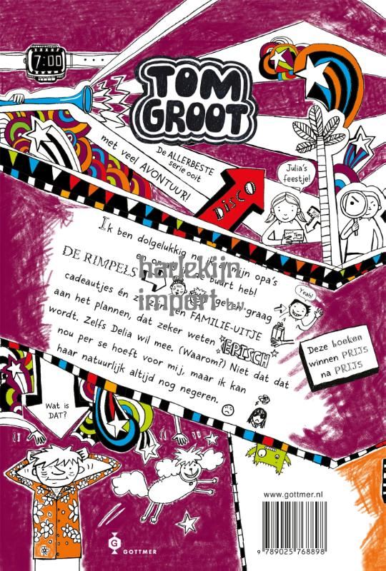 'Tom Groot' is een waanzinnig populaire serie kinderboeken in de stijl van 'Het leven van een loser': een dagboek met de grappigste avonturen, geïllustreerd met lollige tekeningetjes. Tom is een dagdromer, een groot striptekenaar en een meester in het verzinnen van smoesjes. In deel 13 plannen zijn opa en oma een familie-uitje, dat zeker weten EPISCH wordt!