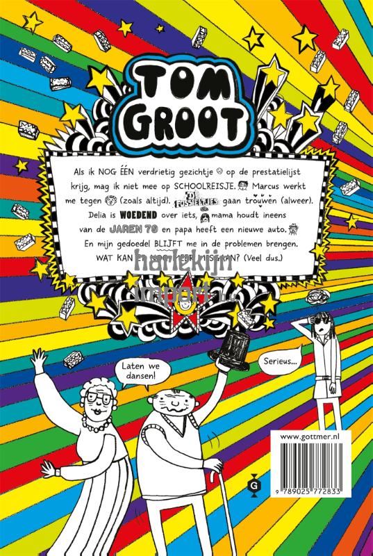 Tom Groot is een enorm populaire serie kinderboeken in de stijl van Het leven van een loser: een dagboek met de grappigste avonturen, geïllustreerd met lollige tekeningetjes. Tom is een dagdromer, een groot striptekenaar en een meester in het verzinnen van smoesjes. Wereldwijd zijn er al meer dan 6,5 miljoen exemplaren verkocht in de serie over de waanzinnige wereld van Tom Groot.