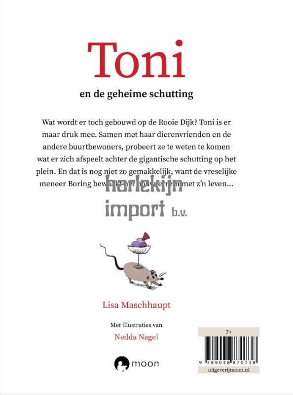 Toni woont op de Rode Dijk, een bruisende plek waar altijd iets gebeurt. Het is er heerlijk! Maar dan, op een dag, staat er opeens een heel grote schutting op het plein in de buurt. Wat zou daarachter gebouwd worden? Toni vraagt het aan haar vaders en aan alle buurtbewoners, mens én dier, maar iedereen zegt wat anders... Dan moet ze zelf maar op onderzoek uitgaan!