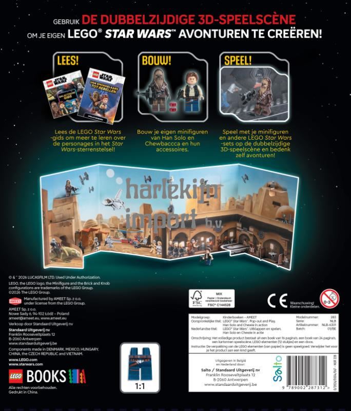 Lees de LEGO® Star Wars™ gids om meer te weten te komen over de personages in het Star Wars-universum en duik in het doeboek voor nog meer galactische pret.Bouw je eigen Han Solo- en Chewbacca-minifiguren en hun accessoires.Speel met je minifiguren en andere LEGO Star Wars sets op het 3D dubbelzijdige speelveld om je eigen avonturen te creëren.