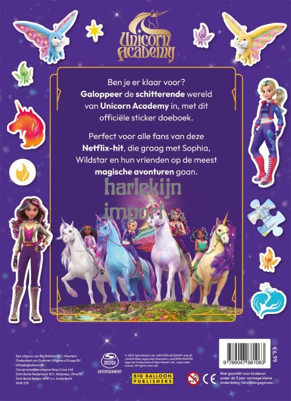 Galoppeer de schitterende wereld van Unicorn Academy in met dit 'Unicorn Academy sticker doeboek'. Met de meer dan 100 stickers ga je op een magisch avontuur met Sophia, Wildstar en hun vrienden. Laat je betoveren door de magische wereld van Unicorn Academy, een Netflix-hit! Wanneer een duistere kracht Eenhoorn Eiland dreigt te vernietigen, staat dappere Sophia met eenhoorn Wildstar en hun schoolvrienden klaar om hun geliefde magische academie te beschermen. Bij Unicorn Academy ontdek je de magie van vriendschap en avontuur met schattige unicorns en heldhaftige vrienden. Voor kinderen vanaf ongeveer 4 jaar.