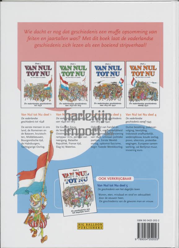 <p>Wie denkt dat geschiedenis een muffe opsomming van feiten en jaartallen is, heeft duidelijk nog nooit een 'Van nul tot nu'-boek gelezen. In deel 2 van deze inmiddels iconische reeks stripverhalen gaat het over de periode tussen 1648 en 1815.<br><br>'Van nul tot nu' deel 2 begint met de Gouden Eeuw, uiteraard met aandacht voor de bloeiende handel, de zeevaart, de Verenigde Oostindische Compagnie en de slavenhandel. Verder gaat het over het rampjaar 1672, de periode van neergang, de Bataafse Republiek, de Franse tijd en tot slot de Slag bij Waterloo, waarbij Napoleon verslagen werd. <br><br>Net als in het eerste deel van de serie zijn Ankie en Methusalem de Tijdt de centrale, vertellende personages in 'Van nul tot nu' deel 2. Thom Roep schreef de aanstekelijke scenario's en Co Loerakker maakte de humoristische tekeningen. 'Van nul tot nu' deel 2 is geschikt voor kinderen vanaf 10 jaar.</p>