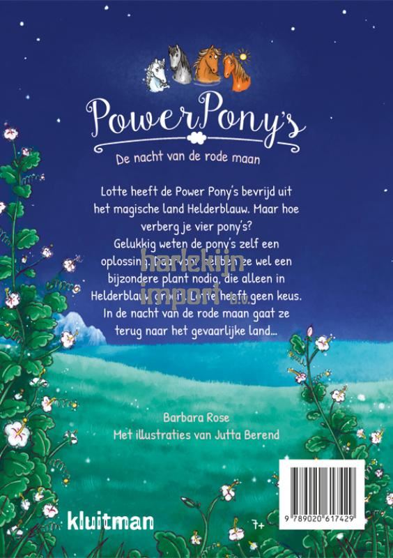 Lotte heeft een groot geheim: ze heeft een magische verbinding met de Power Pony’s en houdt ze zelfs verborgen in haar schuur! Wervelwind en zijn drie vrienden moesten vluchten uit het land Helderblauw. Maar nu verliezen ze langzaamaan hun magische krachten. Ze hebben een speciaal plantje nodig dat enkel in Helderblauw groeit. Maar de poort ernaartoe is gesloten. Alleen tijdens de nacht van de rode maan kan die geopend worden… Lotte bedenkt een plan om de pony’s te redden! De nacht van de rode maan is het tweede deel in de Power Pony’s-serie.