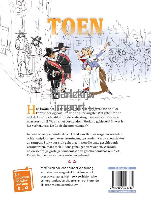 Verrassende gebeurtenissen die de geschiedenisboeken nét niet haalden Hoe komt het dat iedereen de Titanic kent, maar dat de ramp met de Berlin maar zelden een belletje doet rinkelen? Wie weet nog dat de allerkortste oorlog ooit werd gevoerd om een perzik? Hoe lang duurde de langste oorlog eigenlijk? En wat gebeurde er met de Uiver nadat het vliegtuig meedeed aan een race naar Australië? Toen is een boeiende verhalenbundel over verdwenen dorpen, verwoestende ontploffingen, verlaten ruïnes, vergissingsbombardementen een vergeten stormrampen. Wat hebben we daar in de loop van de jaren eigenlijk van geleerd? Om voor te lezen aan nieuwsgierige kinderen vanaf 8 jaar of zelf te lezen vanaf 9 jaar. De verhalen worden verrijkt met achtergrondinformatie, landkaarten en schitterende illustraties van Roland Sillem.