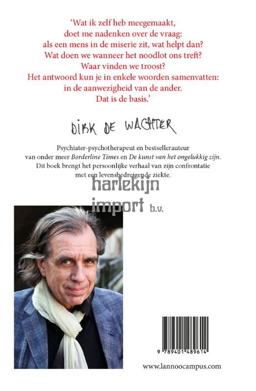 In dit persoonlijke boek onderzoekt Dirk De Wachter hoe we in de moeilijkste momenten troost kunnen vinden. Die zit in kunst, in natuur, in schoonheid, in gedachten en rituelen, maar vooral: in de ander.