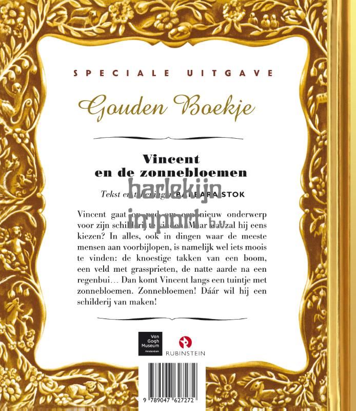 Vincent gaat op pad om een nieuw onderwerp voor zijn schilderij te vinden. Maar wat zal hij eens kiezen? In alles, ook in dingen waar de meeste mensen aan voorbijlopen, is namelijk wel iets moois te vinden: de knoestige takken van een boom, een veld met grassprieten, de natte aarde na een regenbui… Dan komt Vincent langs een tuintje met zonnebloemen. Zonnebloemen! Dáár wil hij een schilderij van maken!