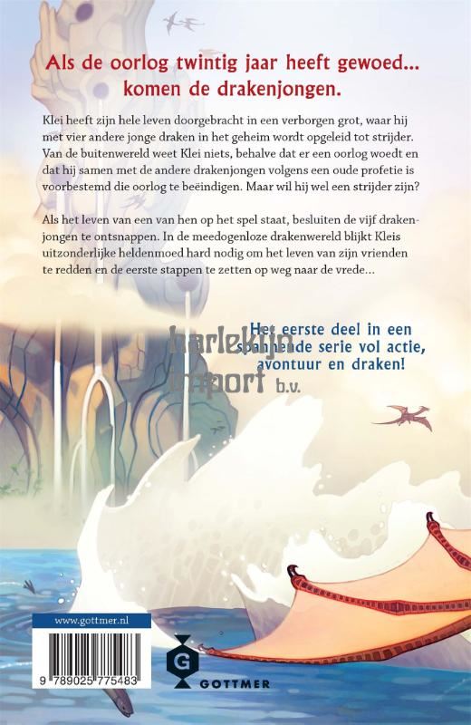 ‘Vleugels van vuur’ is de superspannende fantasy-serie over draken van Tui T. Sutherland, voor kinderen vanaf 9 jaar. Het eerste deel, ‘De drakenprofetie’, is een boek over vriendschap, avontuur en een profetie die de wereld zal veranderen. Zeven drakenstammen zijn al generaties lang verwikkeld in een uitzichtloze oorlog. Alle hoop is gevestigd op vijf jonge draken die volgens een oude profetie vrede zullen brengen in het koninkrijk. Klei is een van die vijf uitverkoren draken. Hij leidt een verborgen bestaan in een grot waar hij door een geheimzinnig genootschap tegen zijn zin wordt vastgehouden. Daar wordt hij opgeleid tot strijder. Maar wil hij dat wel zijn? Als hij samen met de andere vier draken uit de grot weet te ontsnappen om op zoek te gaan naar hun families, blijkt de drakenwereld nog meedogenlozer dan ze altijd verteld is. In het zinderende avontuur dat volgt, ontdekt Klei dat hij misschien niet de grootste strijder is, maar wel beschikt over een uitzonderlijke heldenmoed. En die is hard nodig om het leven van zijn vrienden te redden en de eerste stappen te zetten op weg naar de vrede… Neem met ‘De drakenprofetie’ een duikvlucht in de duizelingwekkende wereld van fantasy-serie ‘Vleugels van vuur’, de internationale hitserie.