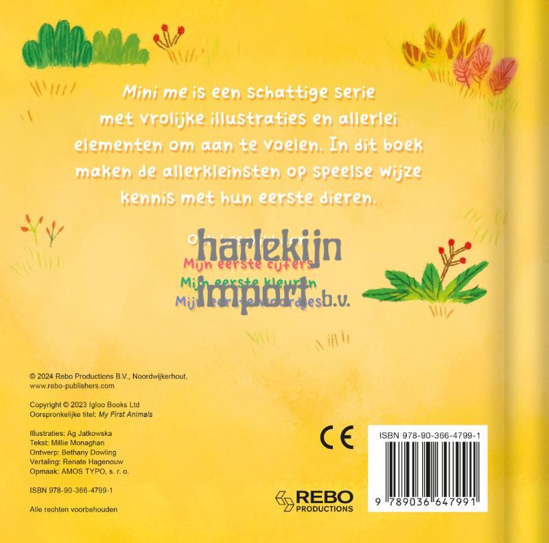 Mini me is een schattige serie met vrolijke illustraties en allerlei elementen om aan te voelen. In dit boek maken de allerkleinsten op speelse wijze kennis met hun eerste dieren.