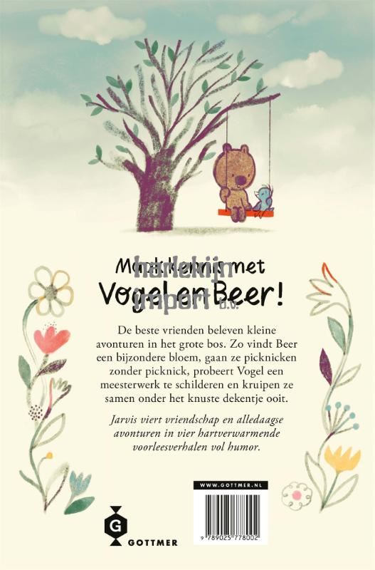 Ontdek 'Vogel en Beer - De picknick en andere verhalen', vier hartverwarmende verhaaltjes die de sfeer van 'Kikker en Pad' ademen en de kracht van vriendschap centraal stellen. Maak kennis met Vogel en Beer, de allerbeste en onafscheidelijke vrienden die samen kleine avonturen beleven in het grote bos. In dit eerste verhalenboek gaan ze op een picknick zonder picknick, probeert Vogel een meesterwerk te schilderen en ontdekken ze dat samen niksen onder de meest knusse deken ooit ook heel leuk kan zijn. Verwacht veel komische misverstanden maar vooral veel warmte. De subtiele humor voor jong en oud en de charme van Jarvis' rake tekst en prachtige illustraties maken 'Vogel en Beer' ideaal om zowel zelf te lezen als voor te lezen. Jarvis, de getalenteerde Britse prentenboekenmaker, brengt met veel humor een ode aan kleine avonturen en vriendschap. Zijn levendige, speelse illustraties bezitten een unieke charme, en zijn boeken zitten vol vrolijke personages en kleurrijke werelden. 'Vogel en Beer - De picknick en andere verhalen' is geschikt voor kinderen van 5 jaar en ouder.